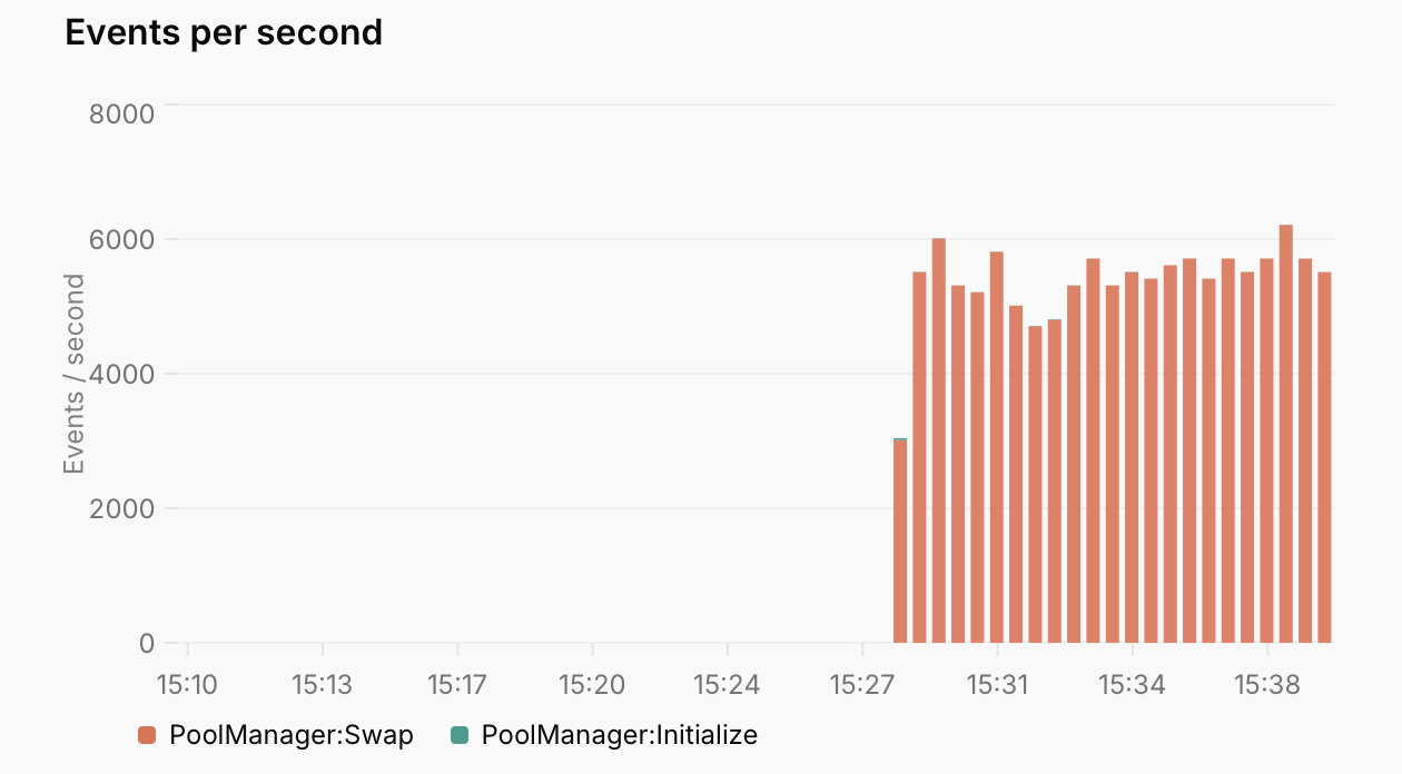 An “event” is a unit of onchain data that triggers an indexing function – blocks, transactions, logs, and traces can all be events depending on the project configuration. The simplified goal of our performance work is to increase the number of events processed per second across a diverse range of user workloads.